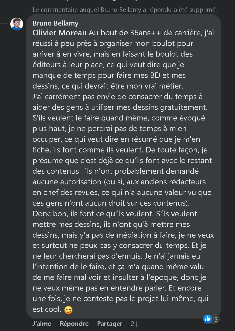 Bruno B. vient de faire un commentaire pour expliquer sa demande de retrait de ses dessins.