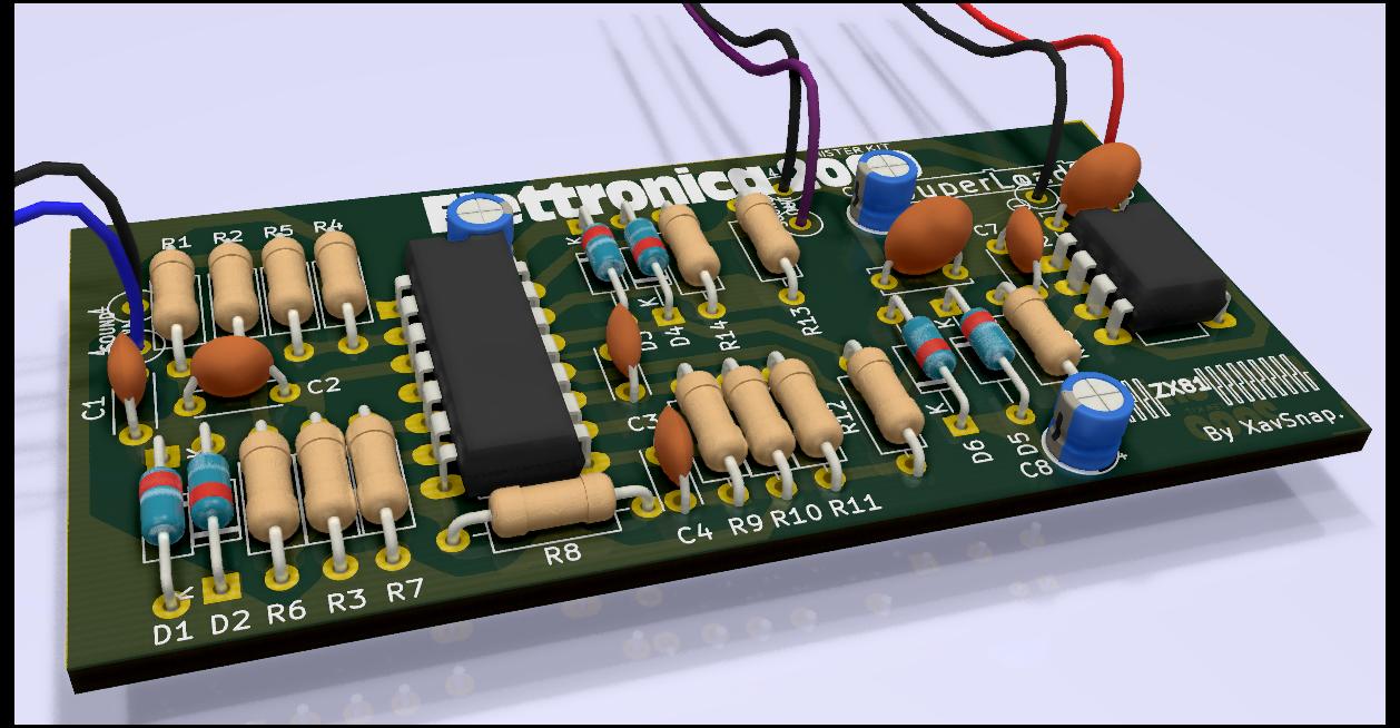 L'alimentation sera prise par les prises avec une connexion parallèle; notre circuit sera placé entre les deux prises EAR avec une connexion en série. Vous pouvez également étudier le conteneur afin qu'il puisse être placé à côté du ZX en correspondance avec les trois prises 9V, EAR et MIC en disposant sur un côté trois prises mâles correctement positionnées.